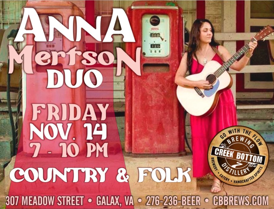 Don’t miss the Anna Mertson Duo at Creek Bottom Brewing on Fri, Nov. 14 from 7-10. They’ll be throwing out a solid mix of originals and some well-known folk & country classics!