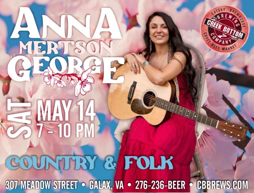 Don’t miss Anna Mertson George at Creek Bottom Brewing on Sat, May 14 from 7-10. She’ll be throwing out a solid mix of originals and some well-known folk & country classics!