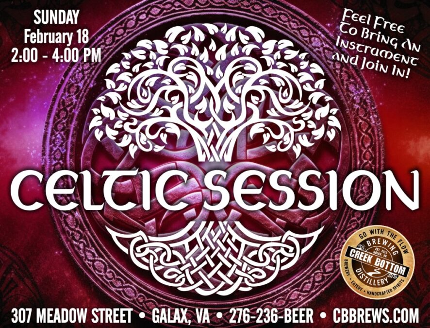 Creek Bottom Brewing is hosting a Celtic Session on Sunday, Feb 18 from 2-4 pm. Bring an instrument and join in on the fun! Or, sit back with a cold bevvy, some great eats and just enjoy the show.