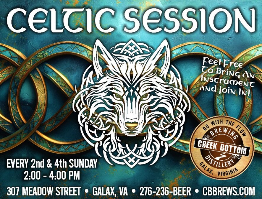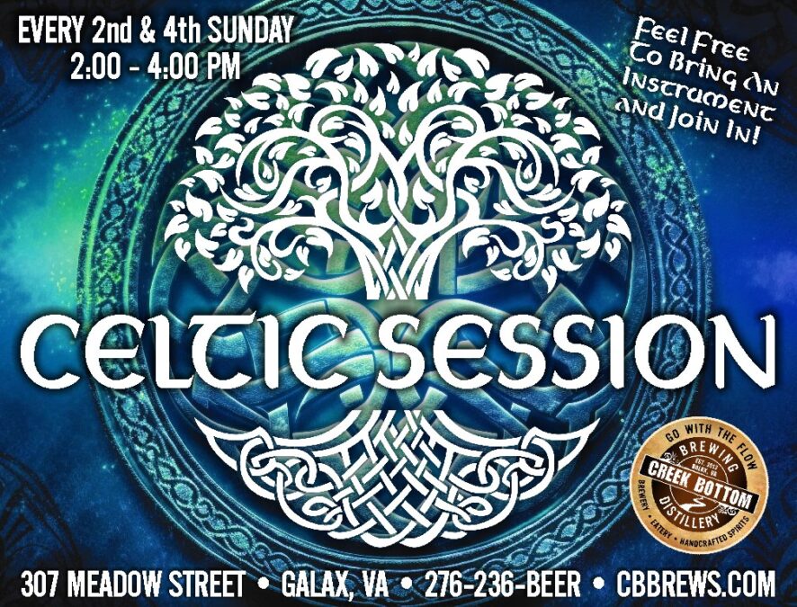 Creek Bottom Brewing hosts a Celtic Session Every 2nd & 4th Sunday of the Month from 2-4 pm. Bring an instrument and join in on the fun! Or, sit back with a cold bevvy, some great eats and just enjoy the show.