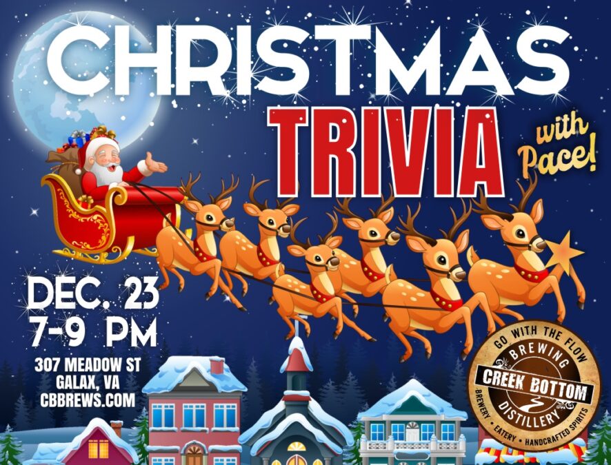 Creek Bottom Brewing has a festive night of Christmas Trivia planned for Tue, Dec 23, the Eve of Christmas Eve! Come on down and strain your beautiful brain with the one, the only… Pace Snow as your host from 7-9 pm. Life really ain’t so bad at The Bottom!
