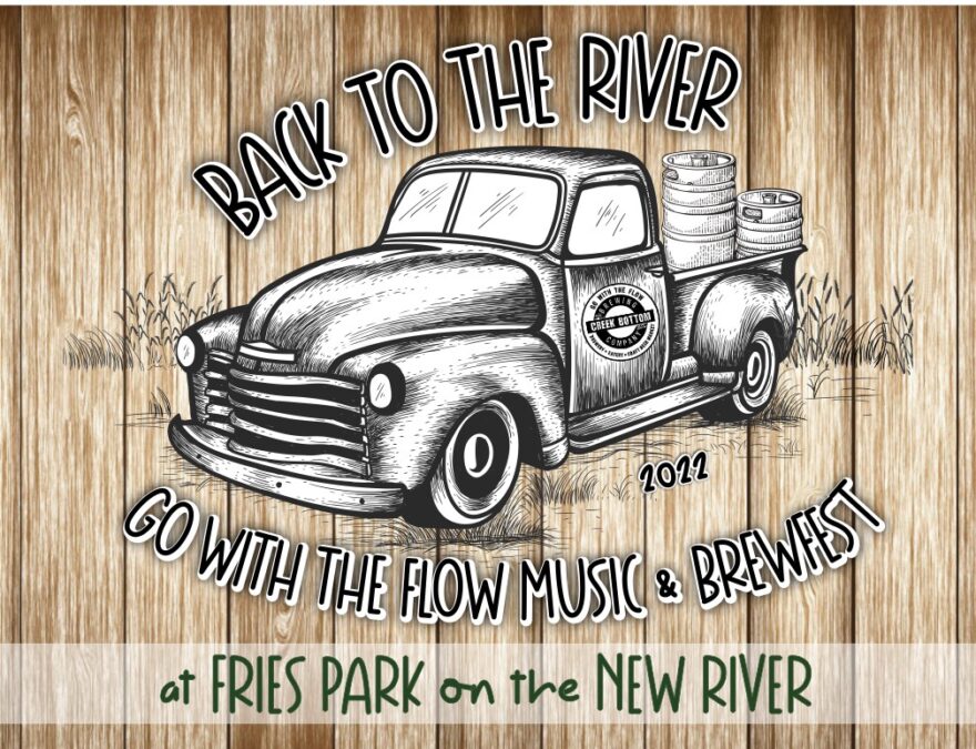 Let’s get Back to the River! Creek Bottom Brewing is kicking off summer by hosting over a DOZEN BREWERIES at the 3rd annual Go with the Flow Music & Brewfest in Fries Park on the New River in Fries, Virginia on Saturday, June 25, 2022 from 12-8 pm.