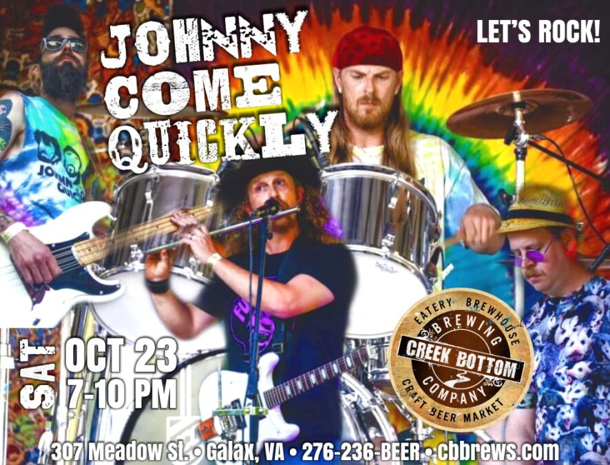 LIVE MUSIC with Johnny Come Quickly on Sat, Oct 23 at Creek Bottom Brewing from 7-10!!! Come eat the best brick oven pizza and wings around and listen to a rockin show!