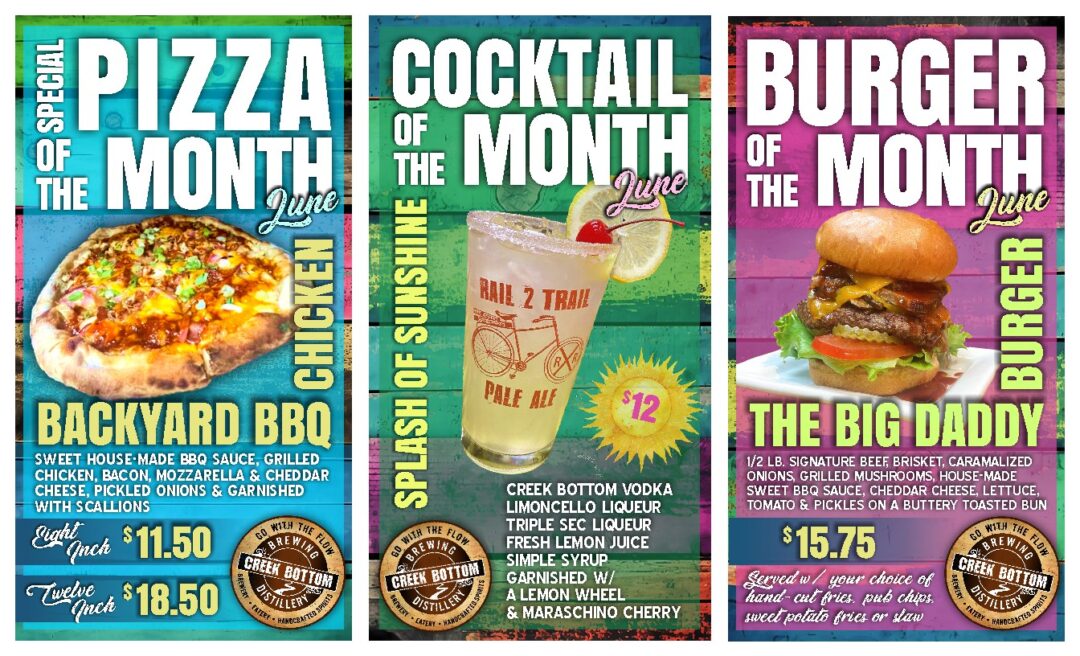 Specials of the month for June 2024 at Creek Bottom Brewing