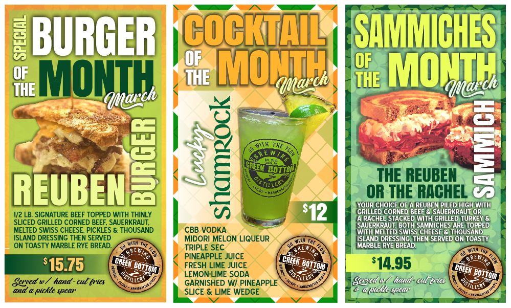 Specials of the month for March 2025 at Creek Bottom Brewing