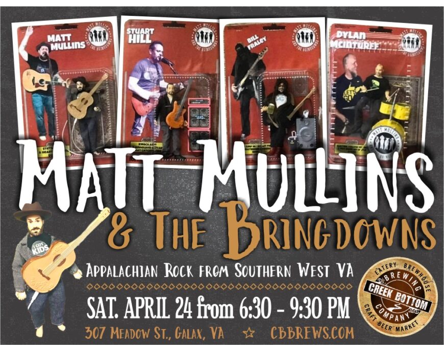 Matt Mullins and The Bringdowns will be ROCKING Creek Bottom Brewing with a super-fantastic live show on Sat., April 24 from 6:30-9:30. Come out and blow the suds off a cold one to some great Appalachian rock!