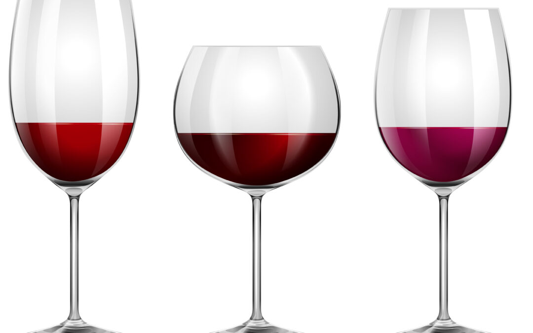 Three sizes of wine glasses
