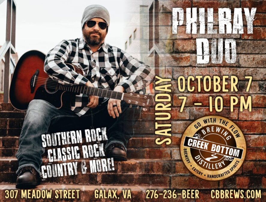 The Philray (aka Phillip Caudle) Duo will rock Creek Bottom Brewing on Sat, Oct 7 from 7-10 with some awesome classic & southern rock plus some of everyone’s Country favorites! Join us for some great grub & brews folks.