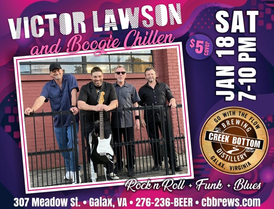 Come on down to Creek Bottom Brewing on Sat, Jan 18 from 7-10 pm for the Victor Lawson and Boogie Chillen show. They have forged an identity as a good-time party band that plays down in the mud rock ‘n roll, funk & the real deal blues tuneage. Eat, drink & chill at The Bottom this weekend! $5 cover.