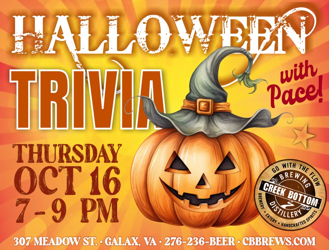 Creek Bottom Brewing has a spooky night of Halloween Trivia planned for Thurs, Oct 16. Come on down and strain your beautiful brain with the one, the only… Pace Snow as your host from 7-9 pm. Life really ain’t so bad at The Bottom!