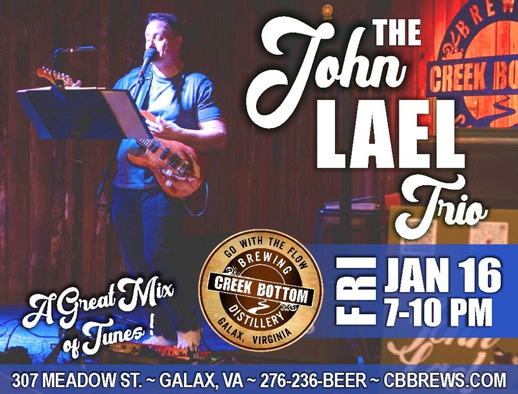 Come out to Creek Bottom Brewing on Fri, Jan 16 from 7-10 pm to enjoy the melodies of John Lael, Will Stewart & Nick . They’ll keep you entertained with a great music mix whilst you do drinks and dinner at The Bottom!