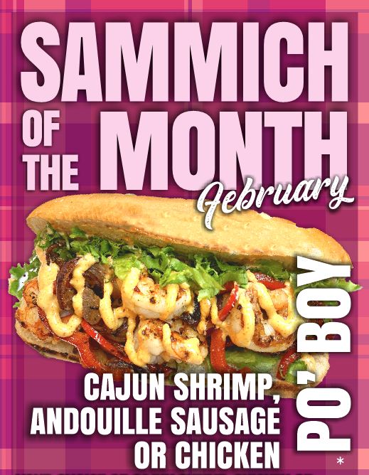 The sammich of the month at Creek Bottom Brewing & Distillery for February 2025 is the The Shrimp, Chicken or Andouille Po’ Boy ! Enjoy this Po’ Boy w/ your choice of Cajun shrimp, Cajun chicken or andouille sausage that’s topped with grilled red peppers & onions, lettuce, tomato then finished with house-made remoulade sauce & served on a toasted hoagie roll.