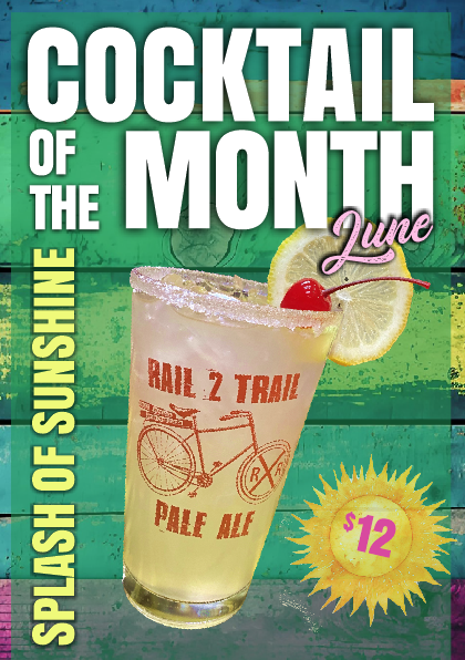 The June cocktail of the month at Creek Bottom Brewing & Distillery is A Splash of Sunshine! Sip on a refreshing citrusy blend of Creek Bottom Vodka, Limoncello Liqueur, Triple Sec Liqueur, fresh squeezed lemon juice, simple syrup. This delight is garnished w/ a lemon wheel & maraschino cherry.