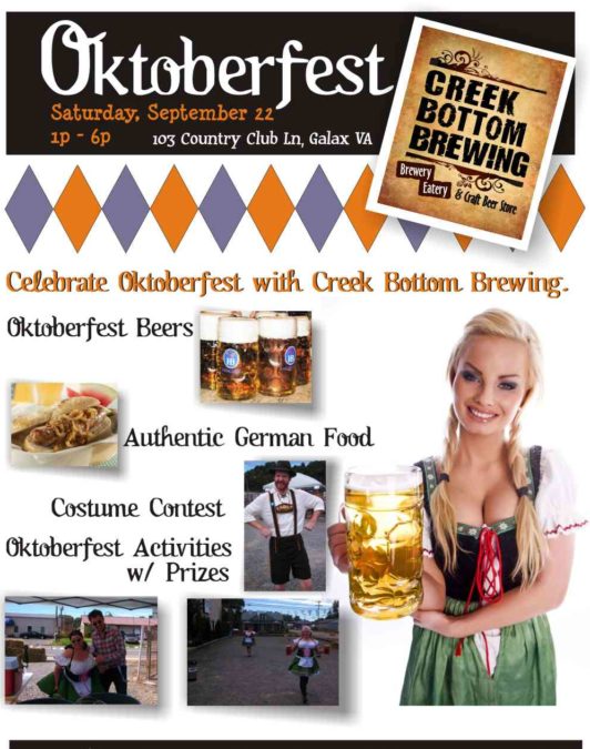 Let the games begin again! Creek Bottom is bringing Oktoberfest back! Costume Contest, Stein Race, Keg Toss, Yodeling Contest, Cornhole, and an Obstacle Course! Dirt Road Breadkdown will be rocking oktober style, and we’re gonna have plenty of beer to fill your take home stein for sure… Stay tuned to find out more!